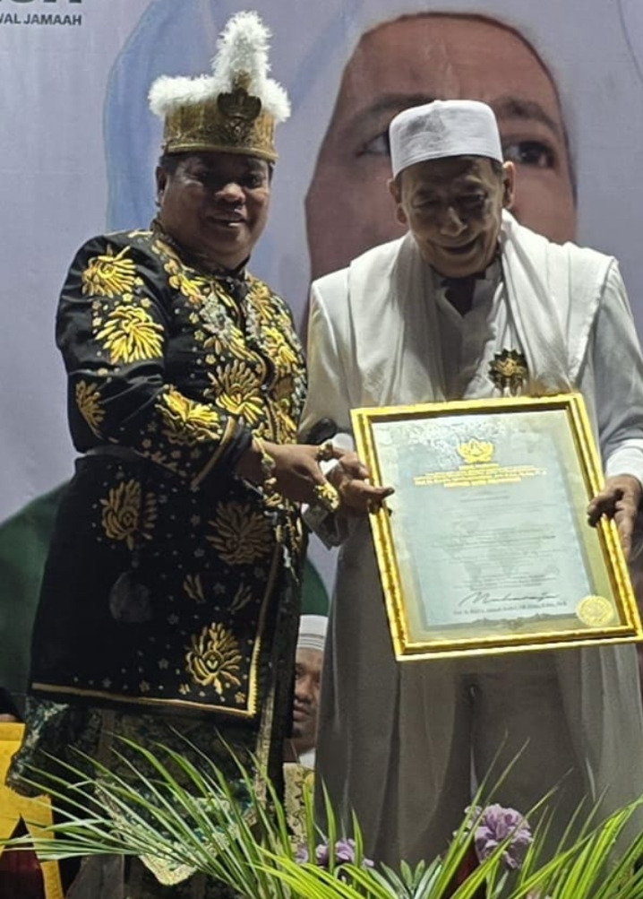 Dalam suasana dzikir yang khusyuk dan penuh keteduhan, penganugerahan Karunia Kaseh berlangsung secara sakral, menegaskan bahwa tradisi luhur adat Nusantara senantiasa berpijak pada nilai spiritual, akhlak mulia, dan penghormatan terhadap ilmu serta pengabdian.