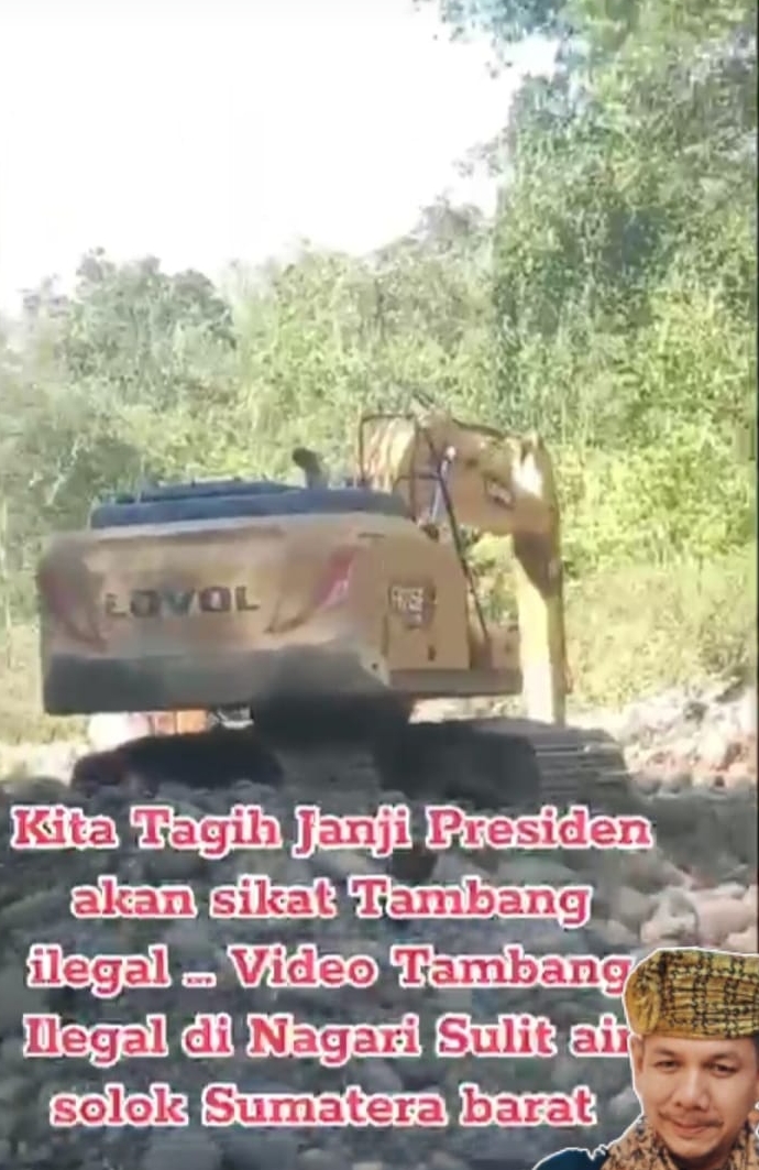 Video aktivitas tambang ilegal di Sulit Air yang kini beredar luas di media sosial menjadi bukti nyata bahwa janji tersebut perlu segera ditindaklanjuti dengan aksi konkret di lapangan.