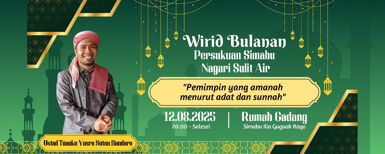 Sementara itu, M. Rafiq Datuk Raja Kuaso, selaku Datuk Kepala Persukuan Simabu, menyampaikan harapannya agar kegiatan wirid bulanan ini dapat terus berjalan lancar sesuai program, dan menjadi ladang amal bagi seluruh anggota, serta membawa keberkahan dan persatuan bagi anak kemenakan di Nagari Sulit Air.